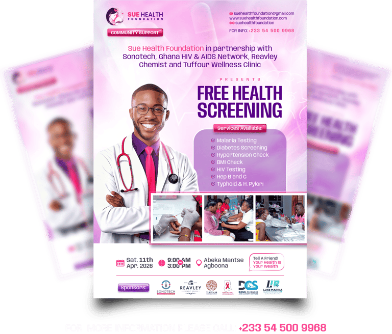This important health initiative is being organized in partnership with Sonotech Medical & Diagnostic Center, Ghana HIV & AIDS Network, Reavley Chemist Ghana, and Tuffour Wellness Clinic. Together, these organizations are committed to providing accessible health services that empower individuals to take control of their wellbeing.