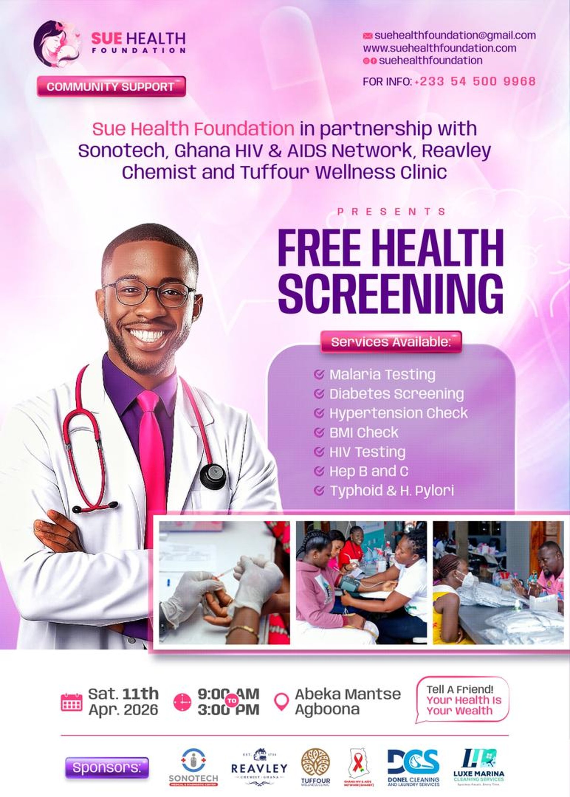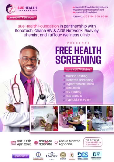 Phone: +233 54 500 9968 or Email: suehealthfoundation@gmail.com